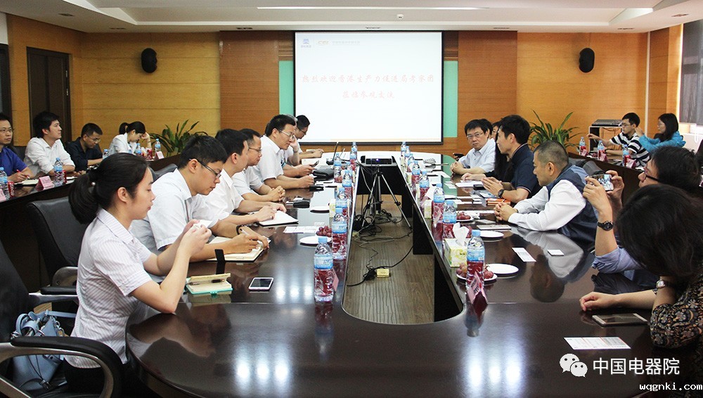 6月30日上午,香港生产力促进局组织十多家汽车相关港企考察团造访中国电器院,双方就新能源汽车配件设备及测试要求进行了交流探讨,孙君光副总经理出席会见,公司经营管理部、公司旗下威凯检测技术有限公司(简称“CVC威凯”)汽车事业部等部门负责人参加。