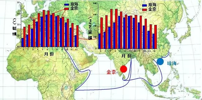 环境数据分析结果显示,“一带一路”沿线的沿海环境相对我国沿海环境更加严酷。例如:同样是湿热环境,印度金奈的温度和太阳辐照度明显高于我国琼海。