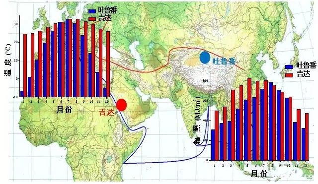 ▲吐鲁番与吉达地区环境条件对比