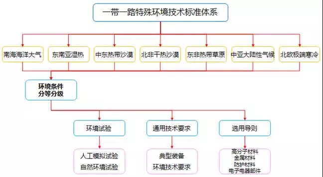 2018年,根据国家“一带一路倡议”和“中国制造2025”战略,结合我国电器、通讯、新能源等企业的发展需求,中国电器科学研究院工业产品环境适应性国家重点实验室联合中国电器工业协会、北京科技大学、中科院金属所、北京航空航天大学、华为、美的、格力、明阳、隆基乐叶、704所、广汽、南方电网科学研究院等高校、研究机构和企业,产学研用相结合,在国内首次提出了“一带一路特殊环境电器产品标准体系架构” 并得到国标委认同,相关的标准已开展研制工作。