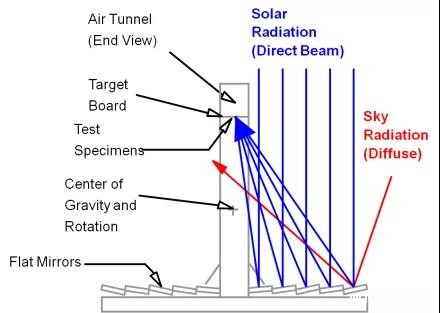 ▲太阳跟踪聚光加速老化试验的原理