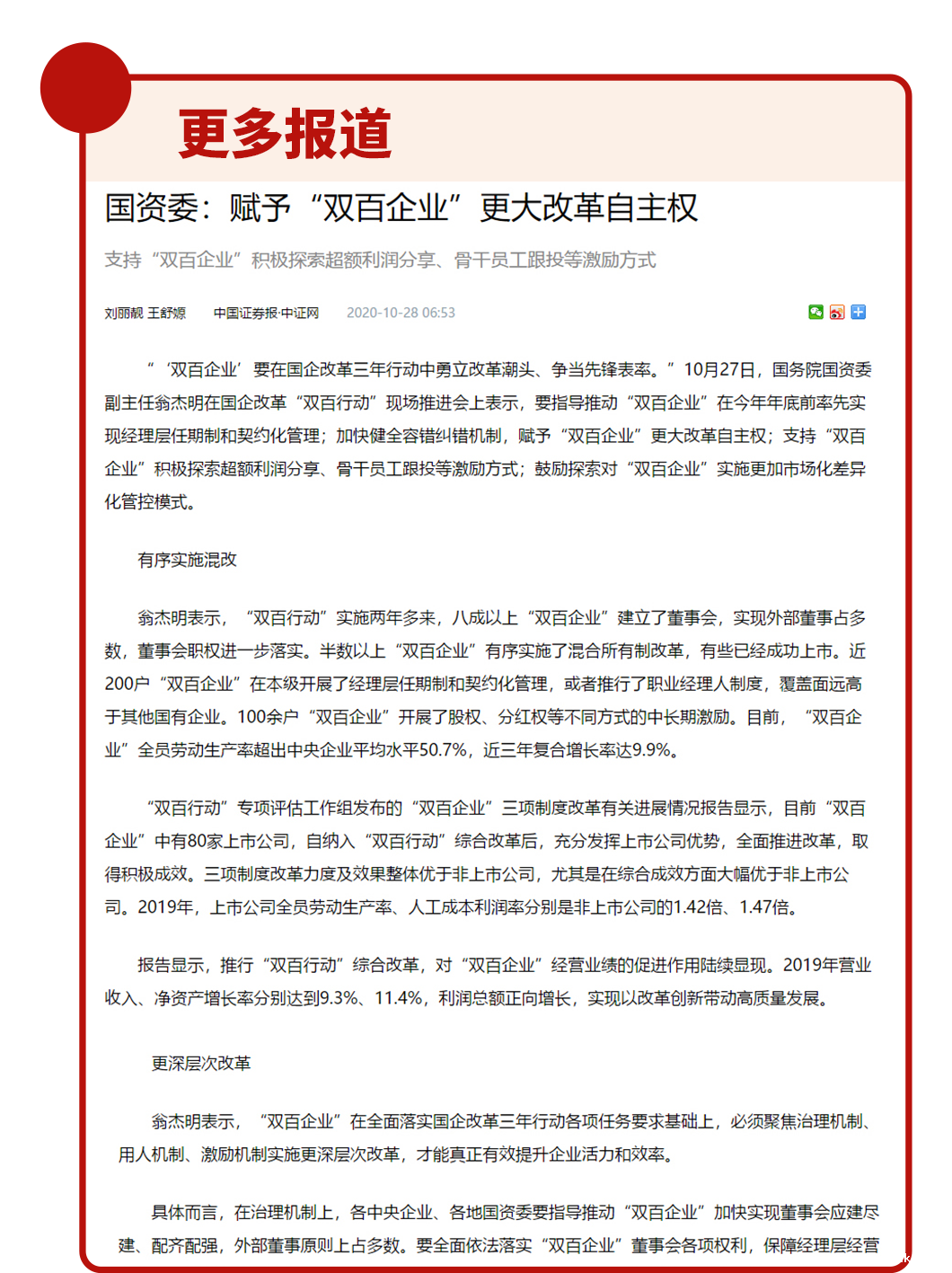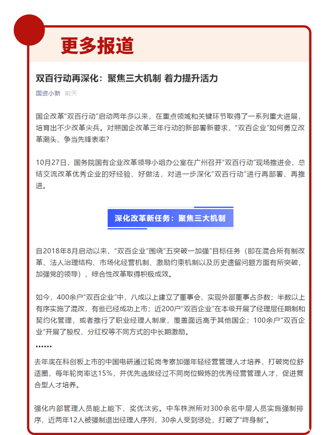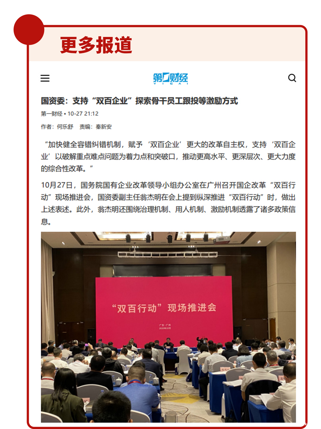 2020年10月27日,国务院国有企业改革领导小组办公室在广州召开“双百行动”现场推进会,taptap下载安装在哪党委书记、董事长章晓斌在会上分享了聚焦治理机制、用人机制、激励机制等“三大机制”的做法和经验。