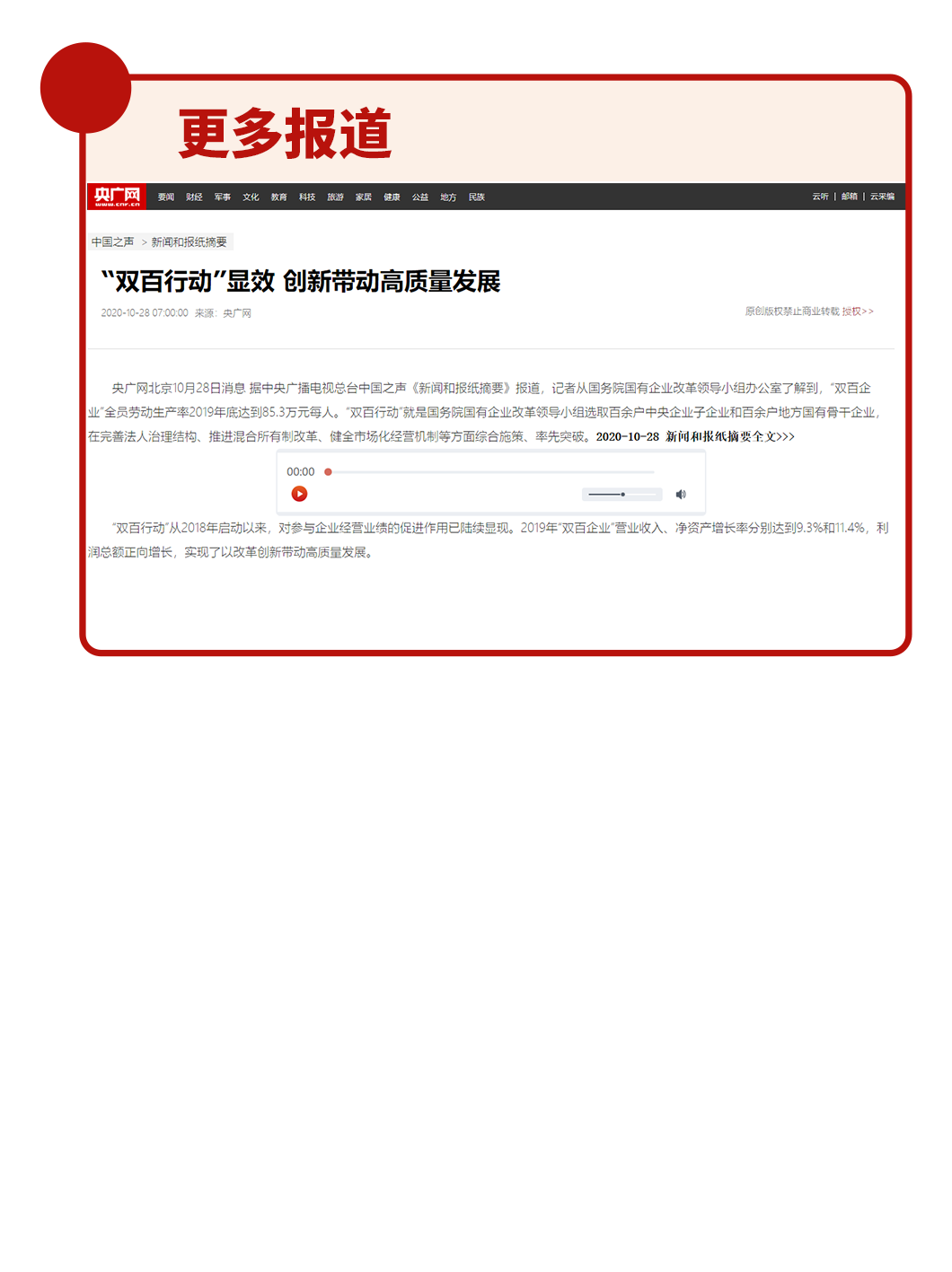 当日,taptap下载安装在哪强势刷屏《新闻联播》黄金时段,“新华社、中国日报、央广新闻等十几家主流媒体也对“双百行动”中的“尖子生”——taptap下载安装在哪,进行了深度报道,对taptap下载安装在哪在现代企业制度、市场化用人机制、上市公司股权激励、科技成果转化激励等方面的深化改革给予了高度评价。”