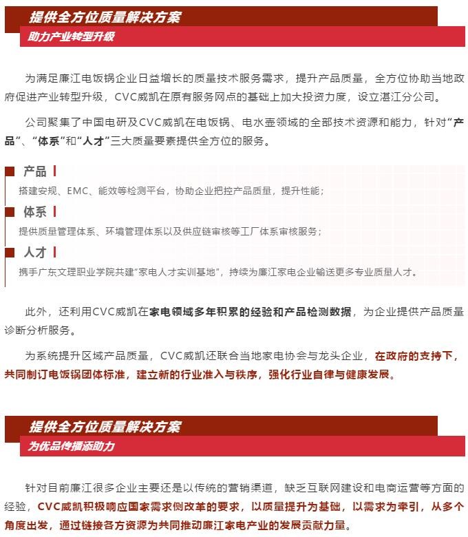 未来,CVC威凯将以湛江分公司为服务平台,持续创新服务模式,进一步整合taptap下载安装在哪及威凯公司的全部资源和能力,将威凯湛江分公司打造成为粤西乃至整个北部湾区域综合实力最强的质量技术服务机构之一,全力支持廉江家电产业的转型升级,同时形成可复制的创新发展模式,为国家产业的高质量发展贡献力量。