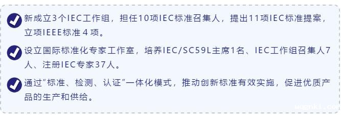 标准创新基地围绕家用电器和电器附件产业高质量发展战略,助推中国家电和电器附件行业走出去,在国际标准制修订、国际标准化人才培养、高端标准供给与实施、标准化一站式服务等方面开拓创新,积极探索技术、标准、产业协同发展模式,形成了一批创新成果: