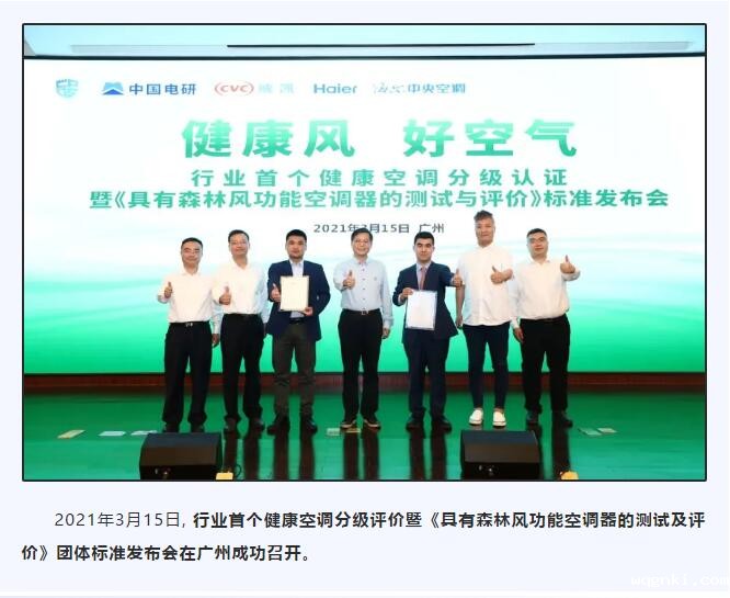 该团体标准区别于空调产品的现行国家和行业标准,创新性的提出了室内空气环境模拟森林空气的指标要求,令我们日常使用的空调产品的功能指标从安全、性能、能效发展到空气健康品质,对空调产品的设计和性能提出了更高的要求,让消费者有了更丰富的选择。