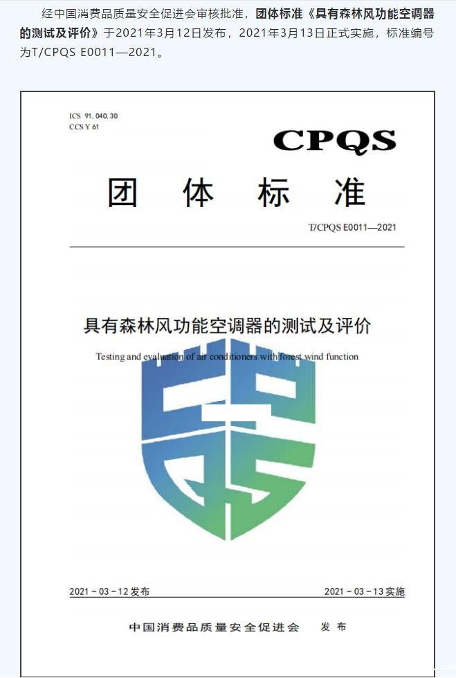 中消会团体标准《具有森林风功能空调器的测试及评价》的发布,使企业的产品设计和研发有据可依,检测机构有标准可循。