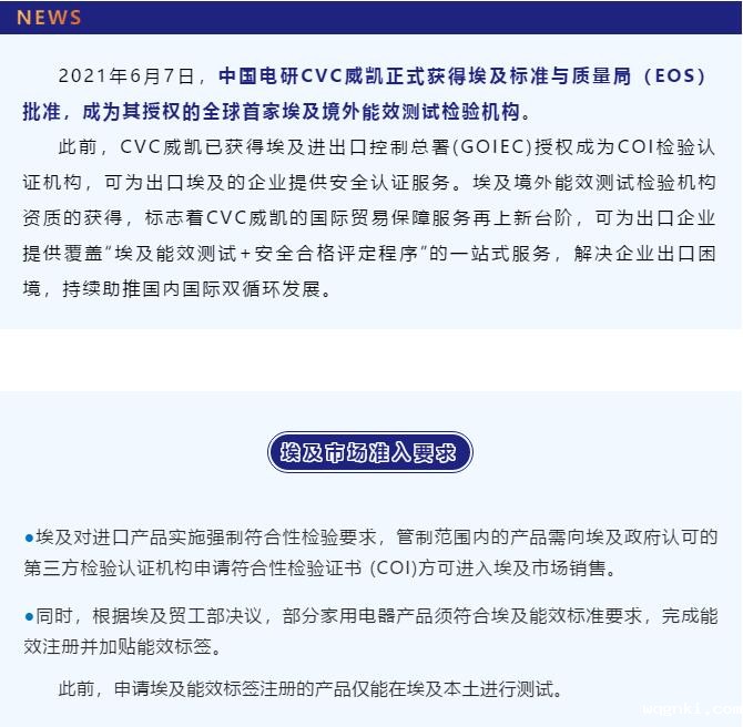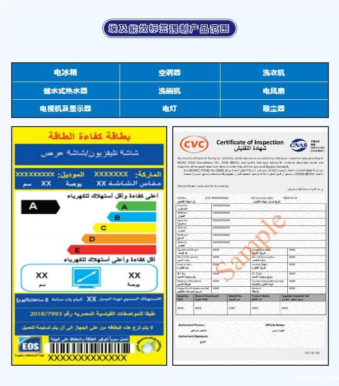 重磅I 全球首家EOS授权的埃及境外能效检测检验机构,CVC威凯提供一站式服务!