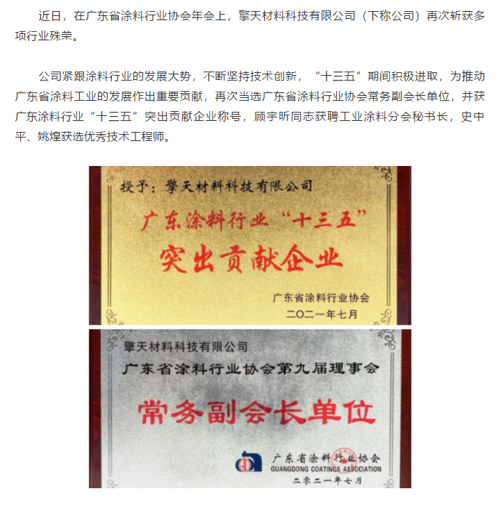擎天材料科技有限公司再次斩获多项行业殊荣