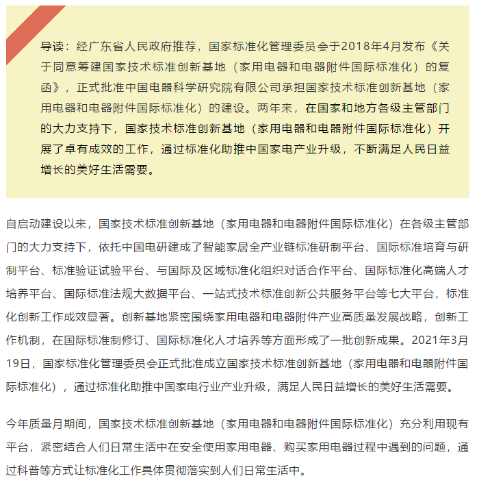 热点 | 以标准化助推中国家电产业升级,满足人民美好生活需要