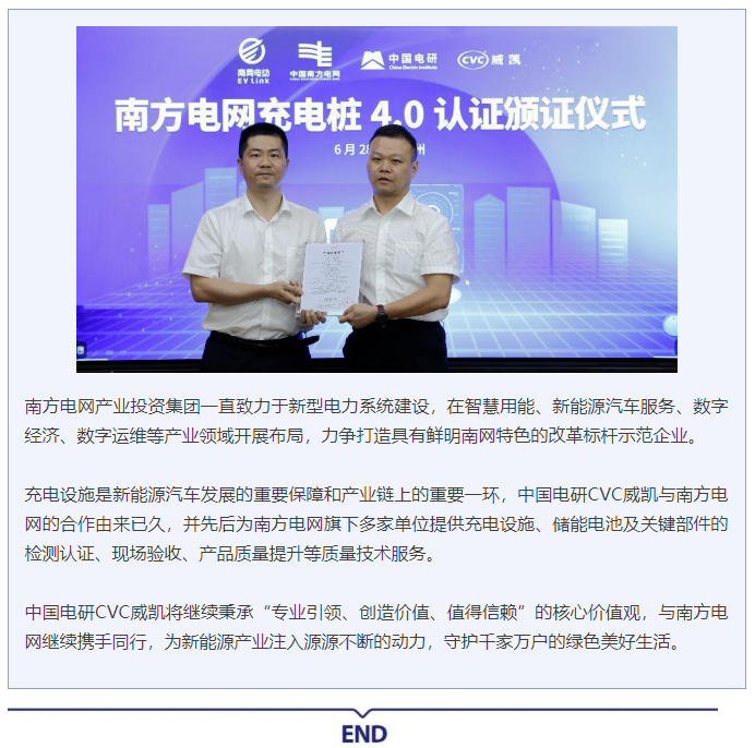 开启合作新篇章 | taptap下载安装在哪CVC威凯为南方电网充电桩4.0颁发认证证书